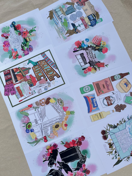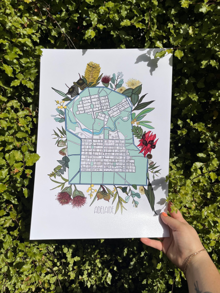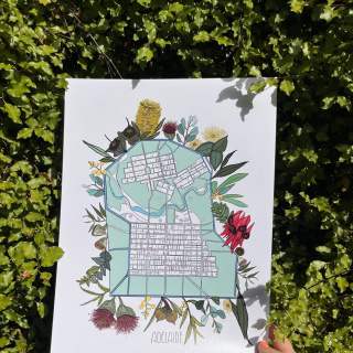 Established in England, now back in SA, Kate’s re-exploring her state as a visual artist. Kate’s aim for this exhibition is for her pieces to be an open love letter to South Australia and all the things she missed about our state whilst living abroad. Kate works with acrylic, watercolour, lino, collage and digital to create a large body of Adelaide themed work.